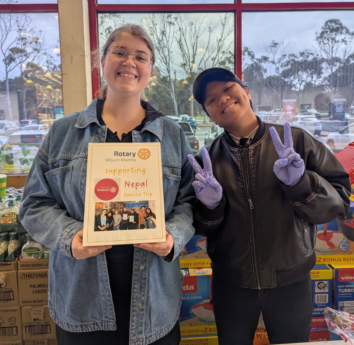 The Bunnings BBQ we have allocated $1,000 to the Peninsula Rotaract Nepal Project - with our profit on the day an excellent $1,994 given the conditions.