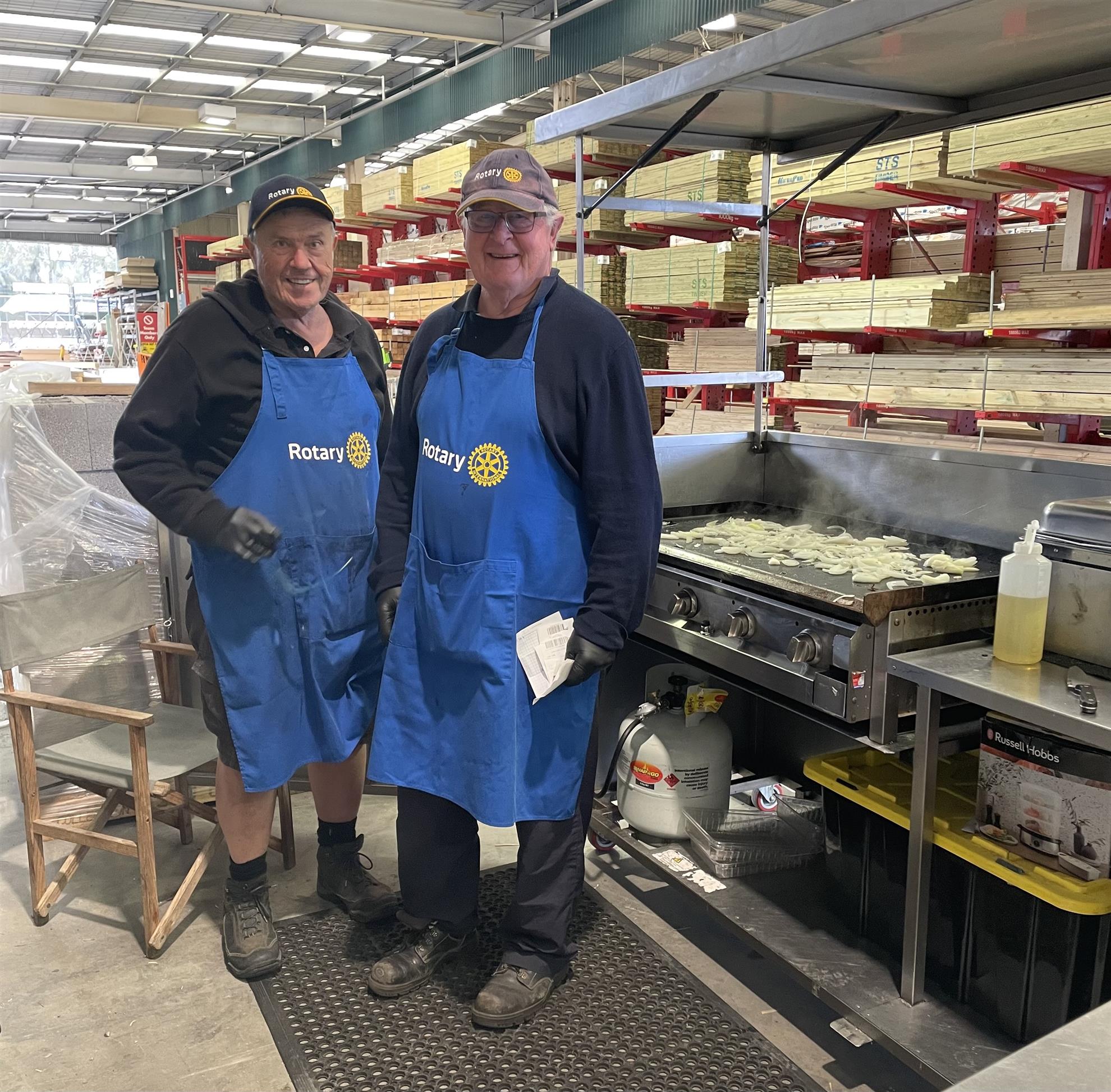 Wayne and Bill were legends, starting early, collecting bread and sausages and towing the trailer and of course cutting onions.