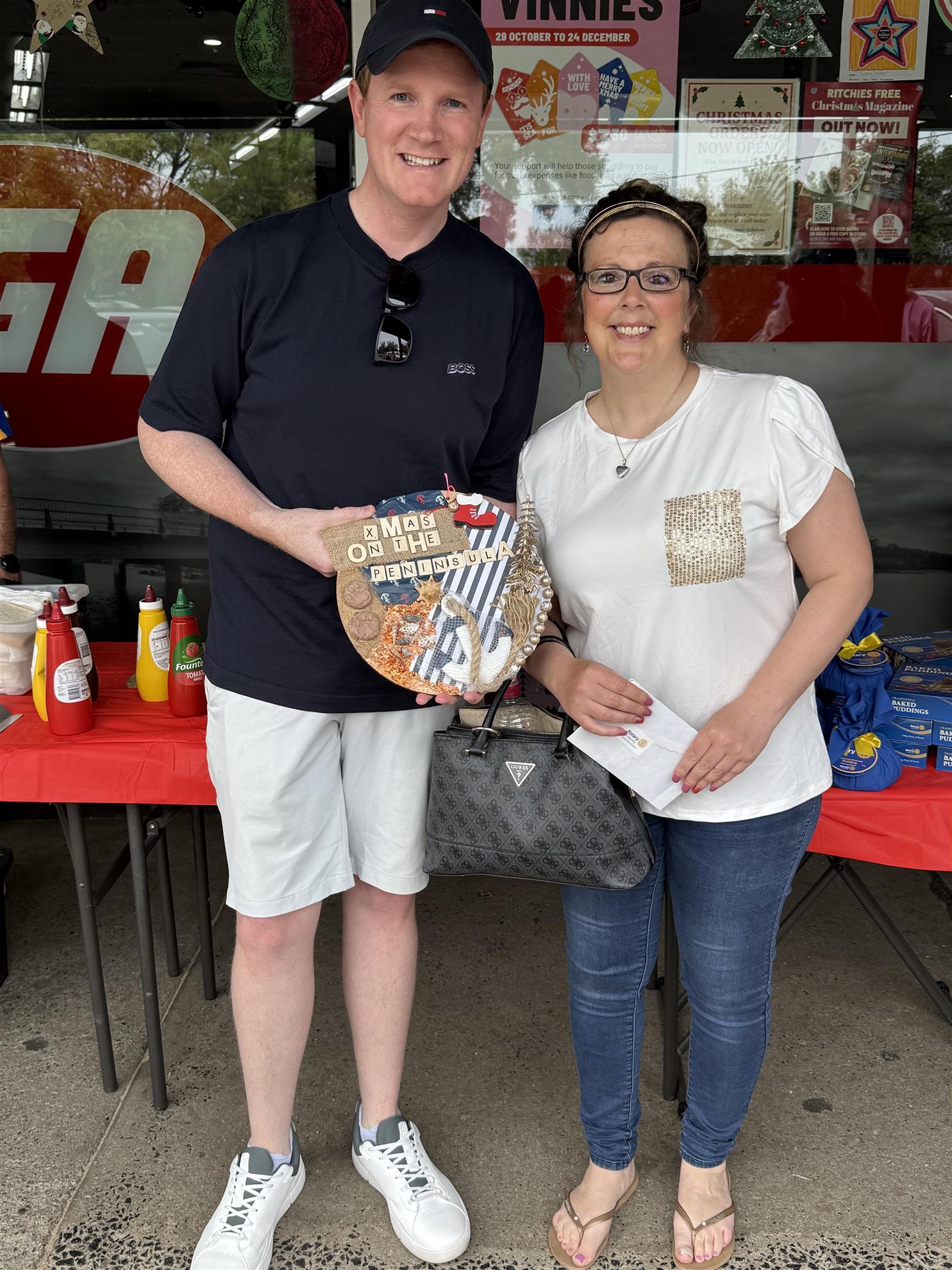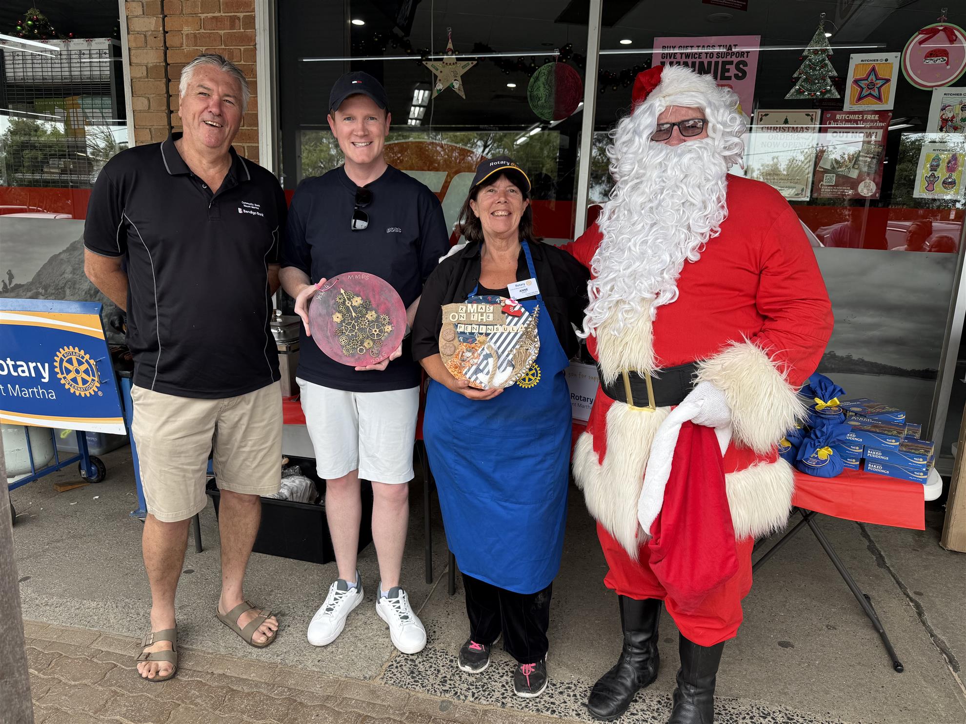 We thank the Mayor, Anthony Marsh for attending the bauble winners announcement and the Mornington Peninsula Shire for being our major sponsor for our Christmas decorations project and Susan Coyle and Mark Dobson for championing this project.