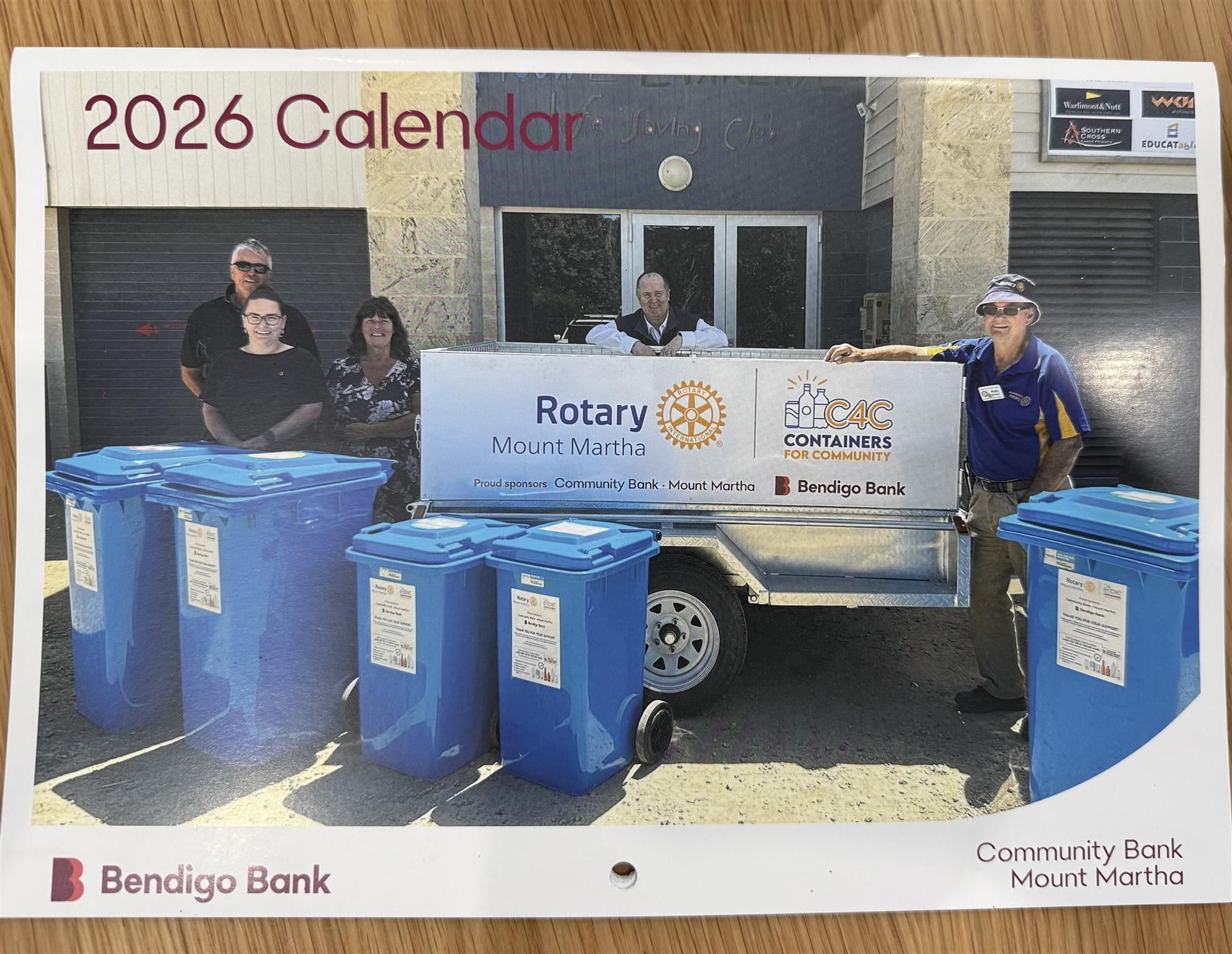 Drop in to the Community Bank Mount Martha for a copy of their 2026 Calendar - with Rotary Mount Martha featuring on the cover page!